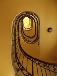 Ma la vera chicca si trova all’interno del portale centrale. L’atrio è stretto, ma pervaso quasi in un vortice da una preziosissima scala elicoidale in ferro battuto e gradini in graniglia di marmo. Il tuffo nel passato è di notevole intensità.