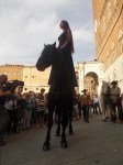 Con la bellezza e la lunga criniera di Camille che in piedi sul cavallo affascina Siena.