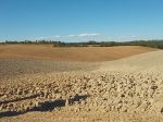 Per anni c’era una discarica dove volavano sopra i gabbiani, adesso i campi sono arati dopo aver prodotto tante spighe per il pane e la camminata è bella, silente agevole e porta senza asprezze alle vigne cariche di grappoli maturi intorno alla villa di Sestano.