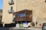 Una palafitta di ferro, legno e vetro, rialzata da terra e attacata a buona percussione e tassello su mura che più o meno risalgono al XII secolo, mura che sono state pesantemente danneggiate dalle incursioni aeree alleate nella seconda guerra.