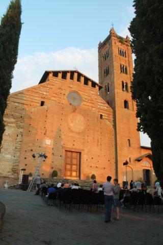 ← Mario Perrotta in “Milite Ignoto – Quindicidiciotto” sulla scalinata della chiesa dei Servi a Siena