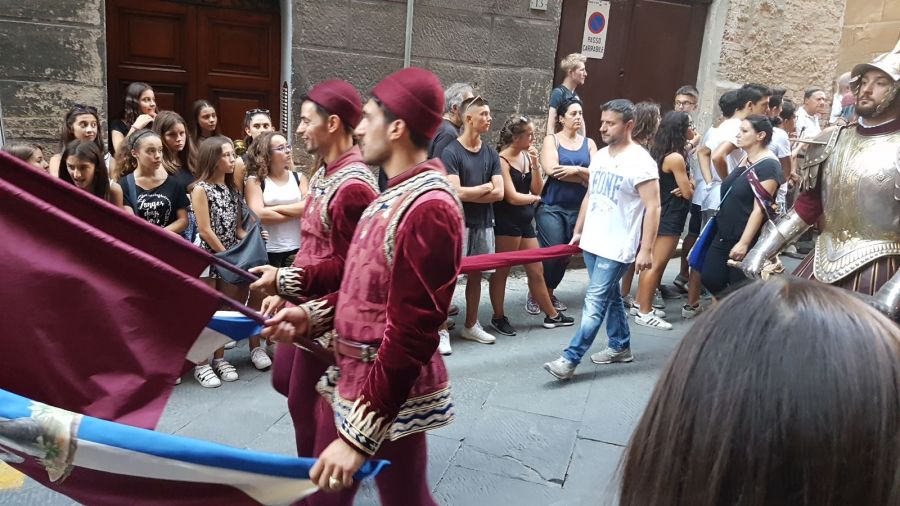 Bruno Monciatti e i figli alfieri della Contrada della Torre