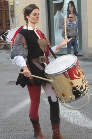 Il fascino della tamburina della Compagnia dell’Orso di Pistoia