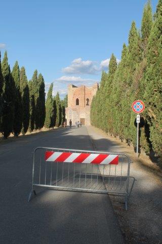 Il parcheggio vuoto dell’Abbazia di San Galgano