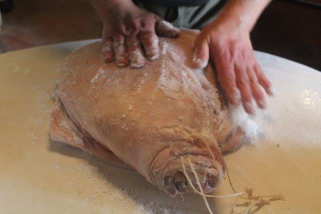 La salatura della spalla e del prosciutto