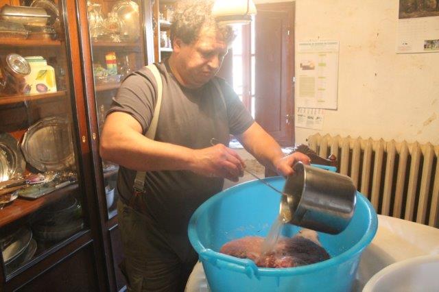 La salatura della spalla e del prosciutto