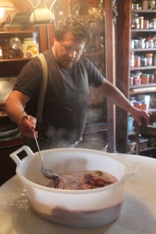 La salatura della spalla e del prosciutto