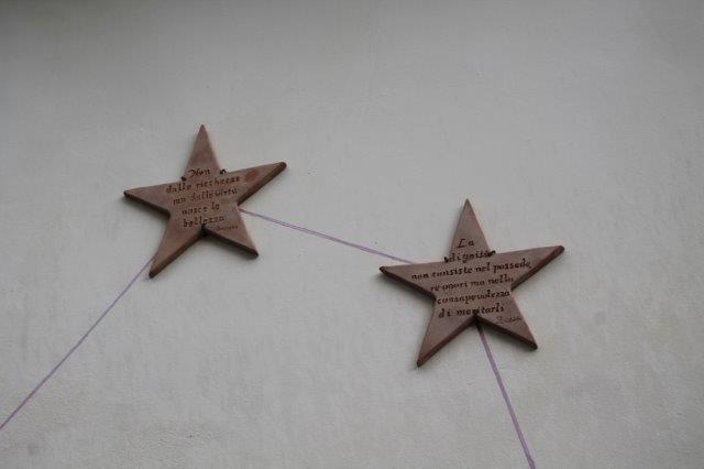 Il viale delle frasi su tegola della Villa a Sesta