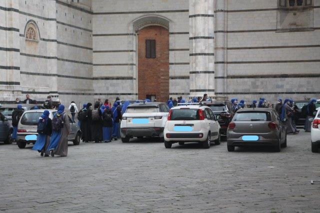 Le Suore del Verbo Incarnato in slalom fra le auto del Duomo