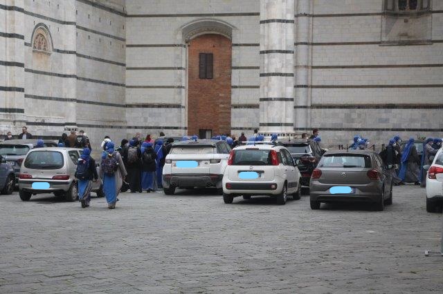Le Suore del Verbo Incarnato in slalom fra le auto del Duomo