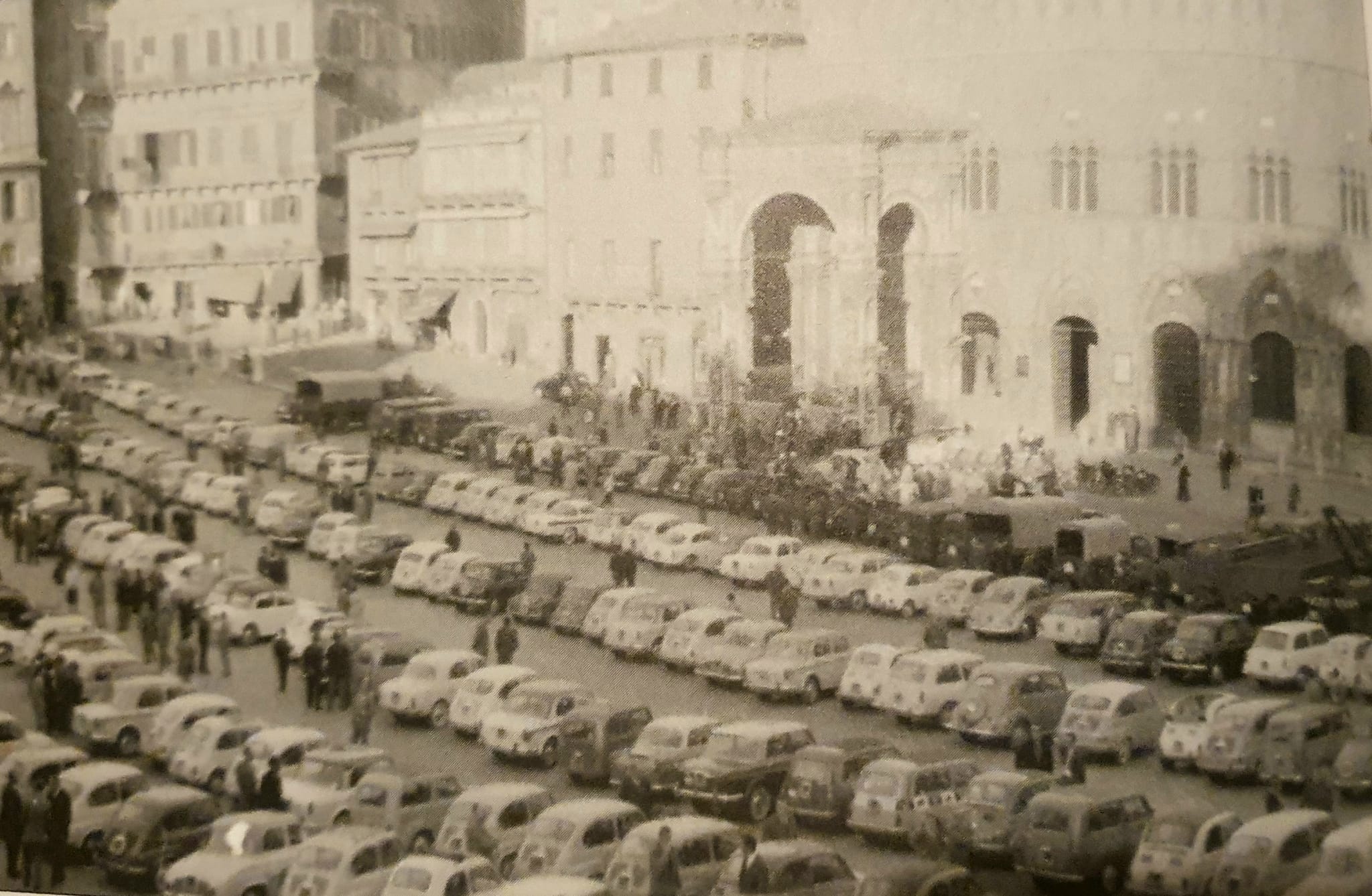 Fra le tante, questa immagine di Piazza del Campo del 1963, proveniente appunto da “C’era una volta Siena” è tra le più rappresentative di un’epoca e del susseguente passaggio epocale: la prima città che chiude il centro storico alle macchine, all’epoca del sindaco Fazio Fabbrini.