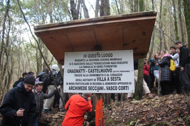 “L’anticiclone di Villa a Sesta” ha protetto dalle intemperie anche questa splendida iniziativa che ha coinvolto le quinte classi dell’Istituto Sarrocchi di Siena, con gli studenti che si sono arrampicati sul “Sentiero di Bubi”, ovvero verso quel capanno nel bosco dove la famaglia Anati trovò rifugio nel freddo inverno a cavallo fra il 1943 e il 1944 e permise loro di salvarsi dalle persecuzioni razziali naziste, con gli abitanti del luogo che si prodigarono per nasconderli e rifornirli di cibo.