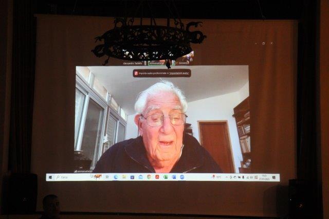 Il professor Giovanni Bianchi e gli encomiabili volontari del circolo che hanno cucinato e preparato la sala da pranzo, dopo il quale è intervenuto (in video) il ragazzo tredicenne del 1943 e ora prossimo ai 95 anni, Emanuele Anati (stimato professore di archeologia) che ha raccontato quel vivere nel bosco per sfuggire alle persecuzioni e della voglia di rimuovere e non parlare di quella storia per oltre mezzo secolo.