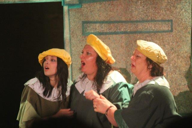 La scenografia è sintetica ma efficace, i costumi – curati da Laura Celesti e Maria Grazia Del Casino sono uno splendore oltre la media sempre alta) gli interpreti sono bravissimi, dai piccolli cuccioli, agli sguardi di mamma già avviate o future prossime, a Remo, notaio vestito da Grillo Parlante.