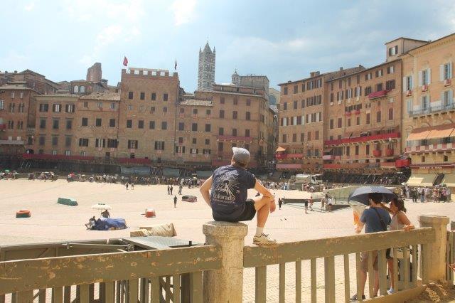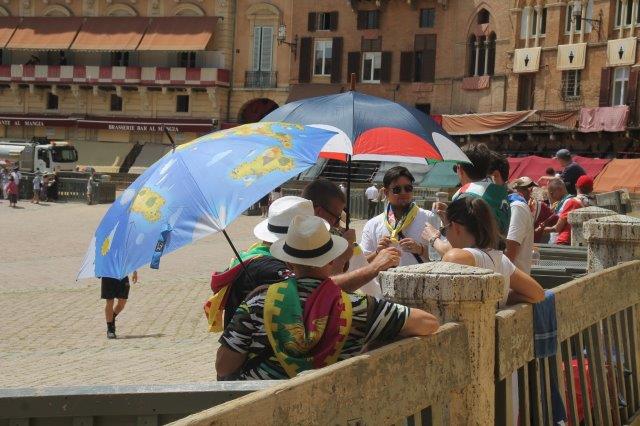 Nella giornata di oggi 16 agosto – fin dalle prime ore del giorno – i settantuno colonnini che fanno da perimetro a Piazza del Campo (Architetto Partini) sono occupati per lunghi minuti (che diventano ore nel lungo insieme) da giovani che sfidano la caparbietà del sole pur di assistere da una posizone – di sicuro e meritato privilegio – a una strana corsa di cavalli che per compiere tre giri di una delle piazze più sognate del mondo, impiegano meno di un minuto e mezzo.