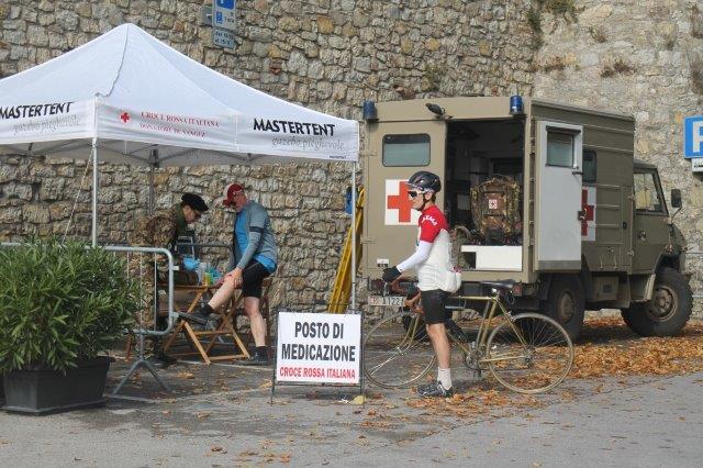 Vento ghiacciato come non ci si ricorda ai primi di ottobre, ma ciò che contraddistingue il passaggio dei corridori – che ancora devono scalare le salite bianche più ardue – è trovarsi di fronte – a dar loro foraggio per le gambe e colazione, una moltitudine di signore che non disdegnano la battuta e che hanno sempre un sorriso pronto per tutti quanti passano da Radda.