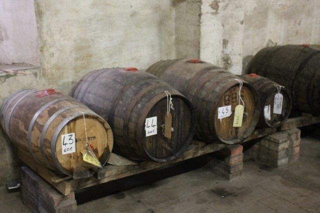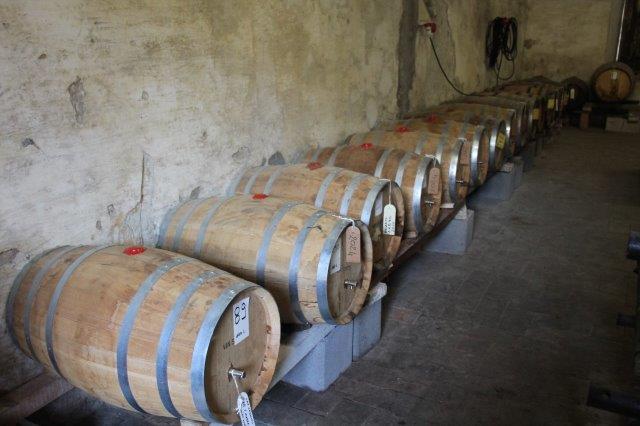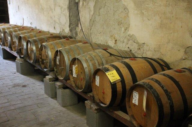 A sangiovesi di una beva sopraffina che nascono nelle vigne intorno a Vignoni e fermentano nel centro storico, si gira intorno all’edificio, si sale una scala di pietra e con due grosse chiavi da chilo che si portano sotto braccio, si apre uno stanzone immenso di base e di altezza con erculee capriate in legno di castagno, che ha le finestre aperte ma protette da finissime reti per non lasciar passare insetti.