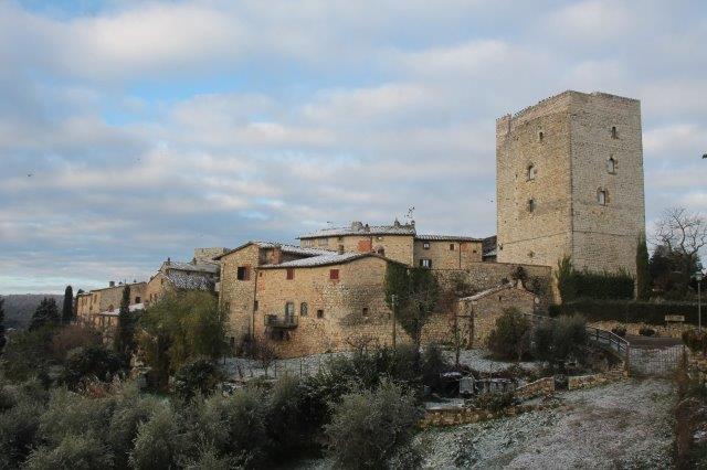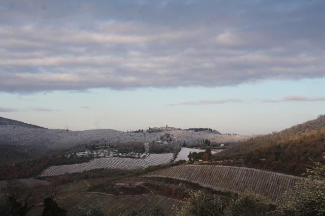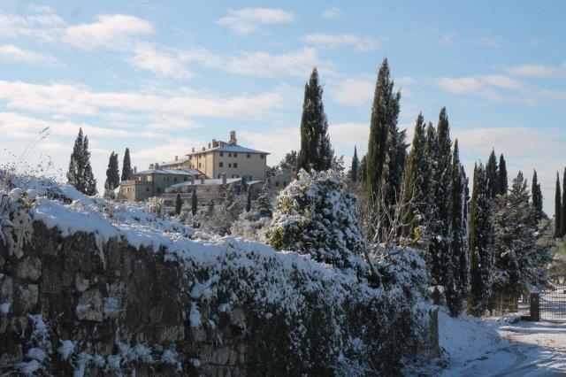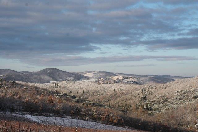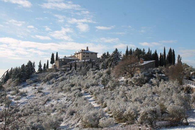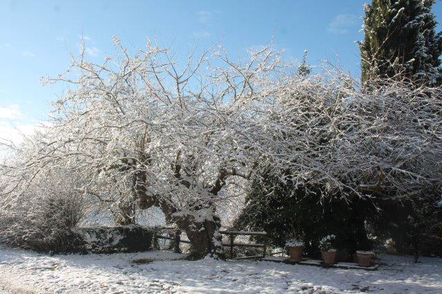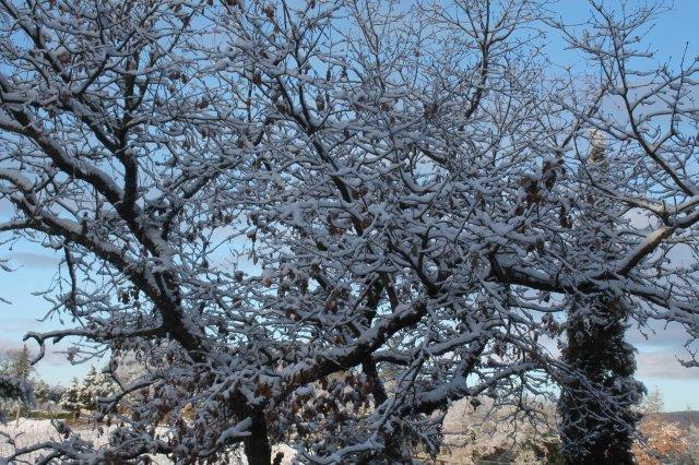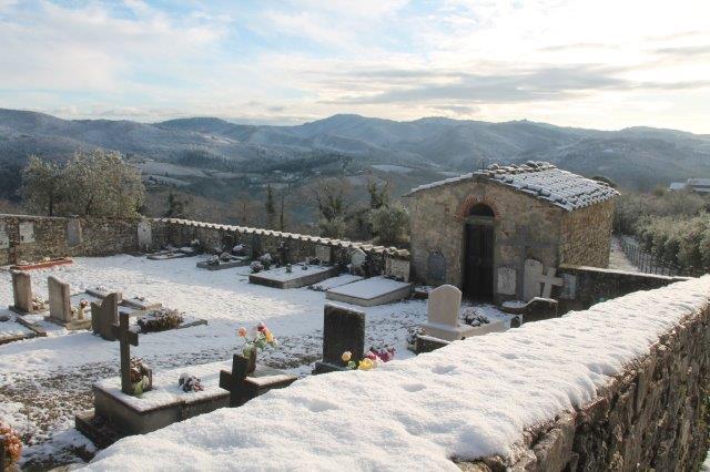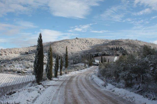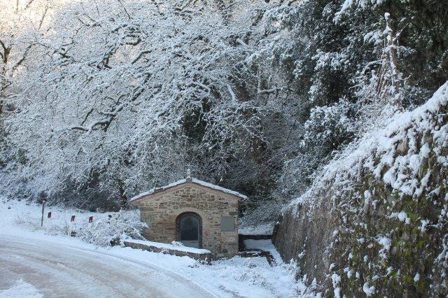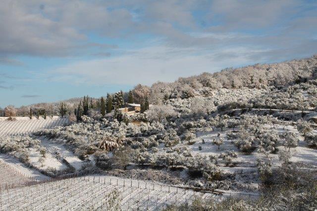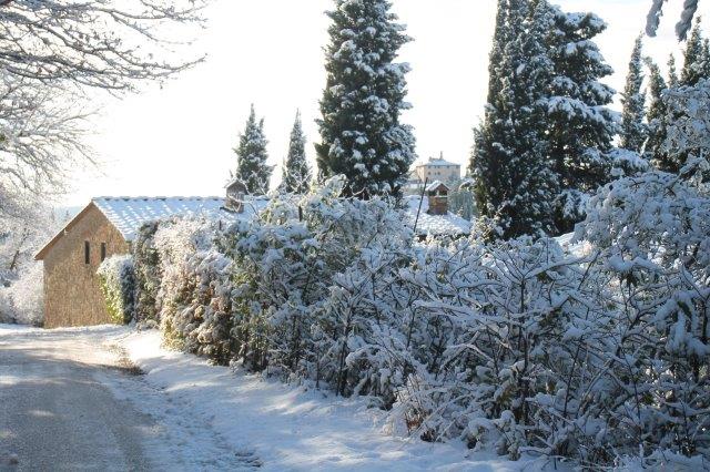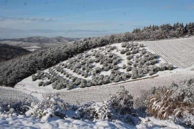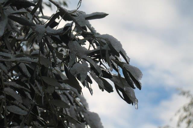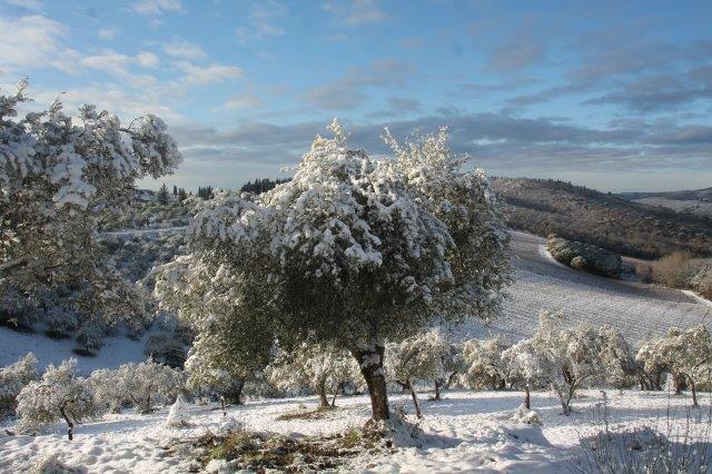 Sotto la suola delle scarpe la neve è croccante: avverte della gelata avvenuta in notturna e vede gli ulivi stridere con il ghiaccio attaccato alle gronde.
