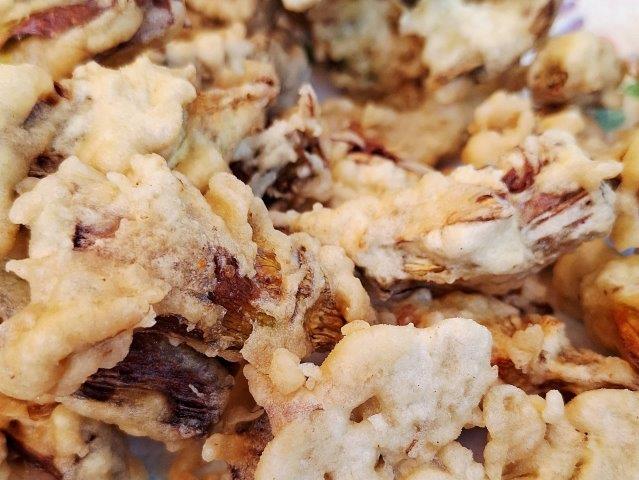 Giovanni Bianchi è un fisico prestato a mille scienze e culture, ma in questo piccolo mondo antico mette la fisica applicata all’ olio a bollore e tempi di cottura, pastella istantanea che corazza il carciofo che così passa in un istante dal tegame alla carta assorbente e rovente si deposita – tenerissimo – nelle ganasce ansiose dei presenti.