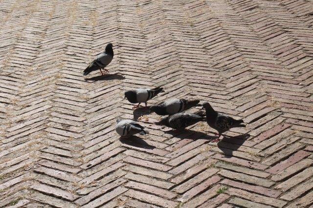 signora che getta pane bagnato ai piccioni piazza del campo (15)